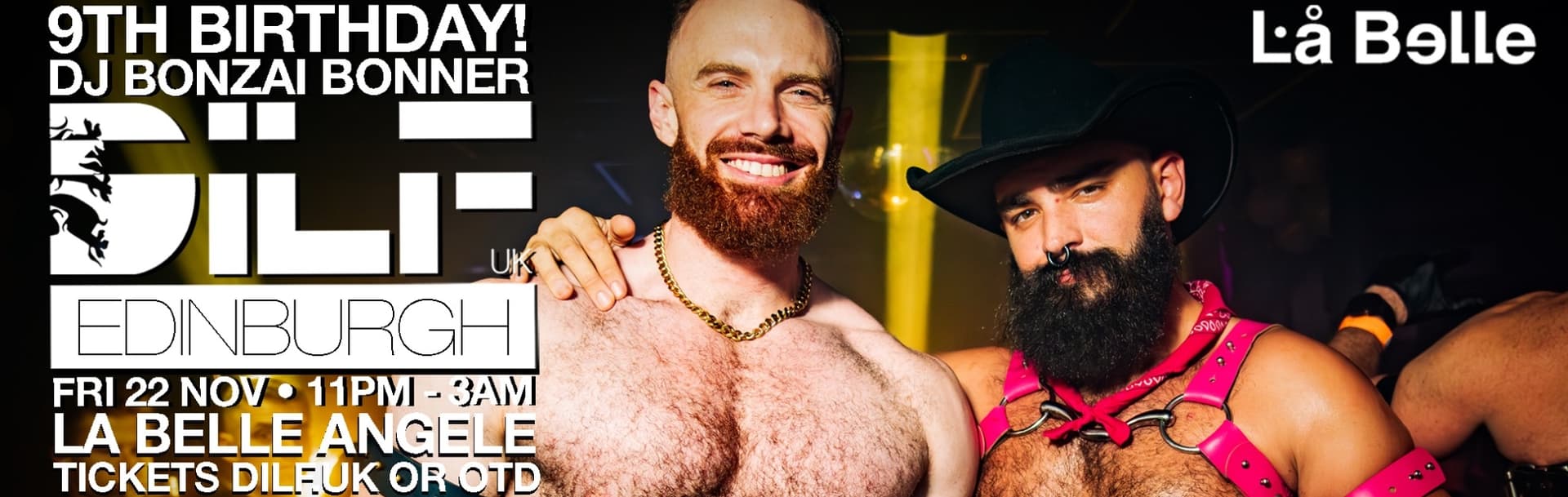 DILF EDINBURGH returns to LA BELLE ANGELE with a very special dance party for Bears, Cubs, Leathermen, Rubbermen, Jocks, Pups +more!